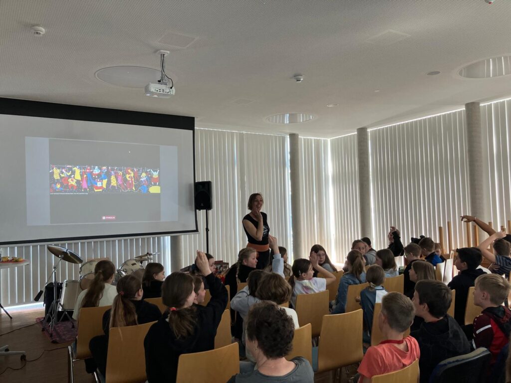 Die Kinder- und Jugendbuchautorin Sarah Orlovsky´ präsentierte in vier interaktiven Lesungen ihre ausgezeichneten Bücher „ICE – Ida, Christ und Emil im Zug“, „Eine halbe Banane und die Ordnung der Welt“ sowie „Tomaten mögen keinen Regen“. Mit ihrem erfrischenden und ermutigenden Vortrag machte sie uns alle neugierig auf ihre Bücher.