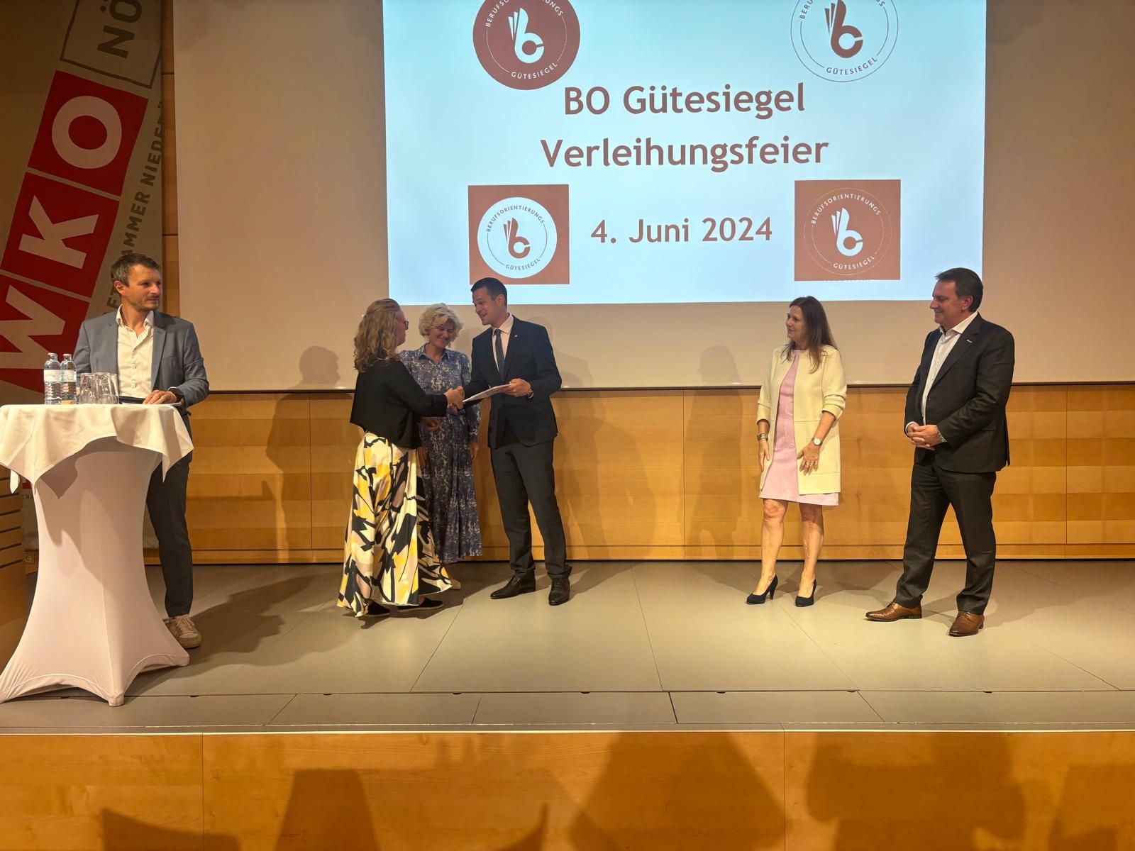 Bereits zum wiederholten Male wurde unsere Schule mit dem BBO-Gütesiegel ausgezeichnet. Verschiedene Aktivitäten und Unterichtsschwerpunkte im Unterrichtsfach Berufs- und Bildungsorientierung informieren unsere Schülerinnen und Schüler über die unterschiedlichen Möglichkeiten des weiteren Bildungs- und Berufsweges. Im heurigen Schuljahr besuchten wir beispielsweise den Tag der Lehre in der Marxhalle Wien, wurden von ortsansässigen Firmen besucht und informierten uns auf der Lehrlingsmesse in Mistelbach über offene Lehrstellen.