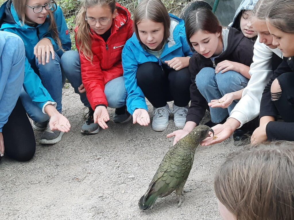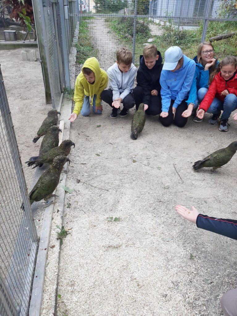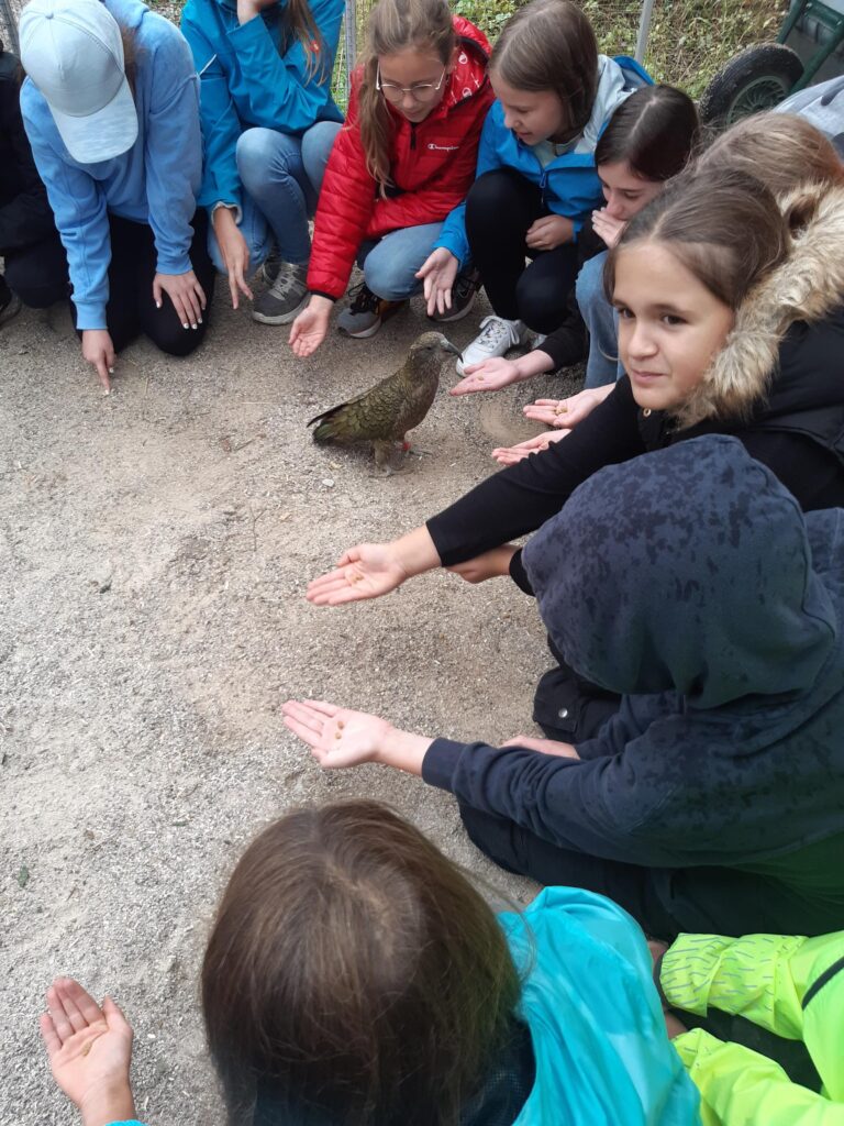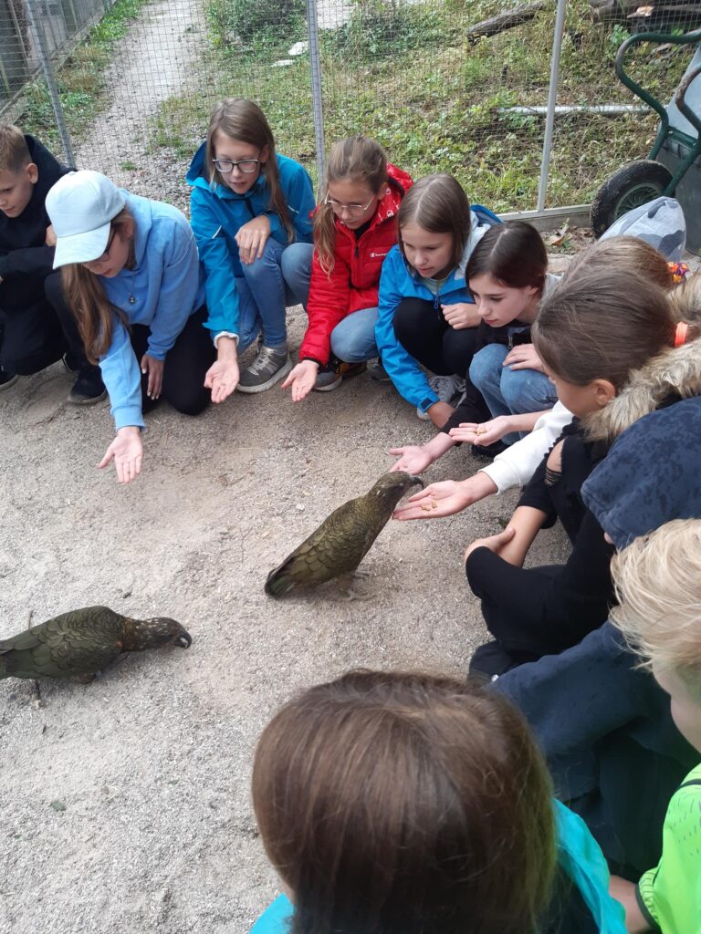 Am Dienstag, 10.10.2023 unternahmen die SchülerInnen der Mint-Klasse 2b eine Exkursion zum Haidlhof. Dabei handelt es sich um ein Forschungszentrum in der Nähe von Bad Vöslau, das von der Universität Wien in Kooperation mit der Veterinärmedizinischen Universität Wien betrieben wird. Dort werden an Keas und Raben Forschungen zum Thema „Intelligenz im Tierreich“ angestellt. Die Informationen, die die Kinder von den Forschern bekamen, waren neu, spannend und interessant. Die Begegnung mit den Tieren eine beeindruckende Erfahrung für die Kinder.