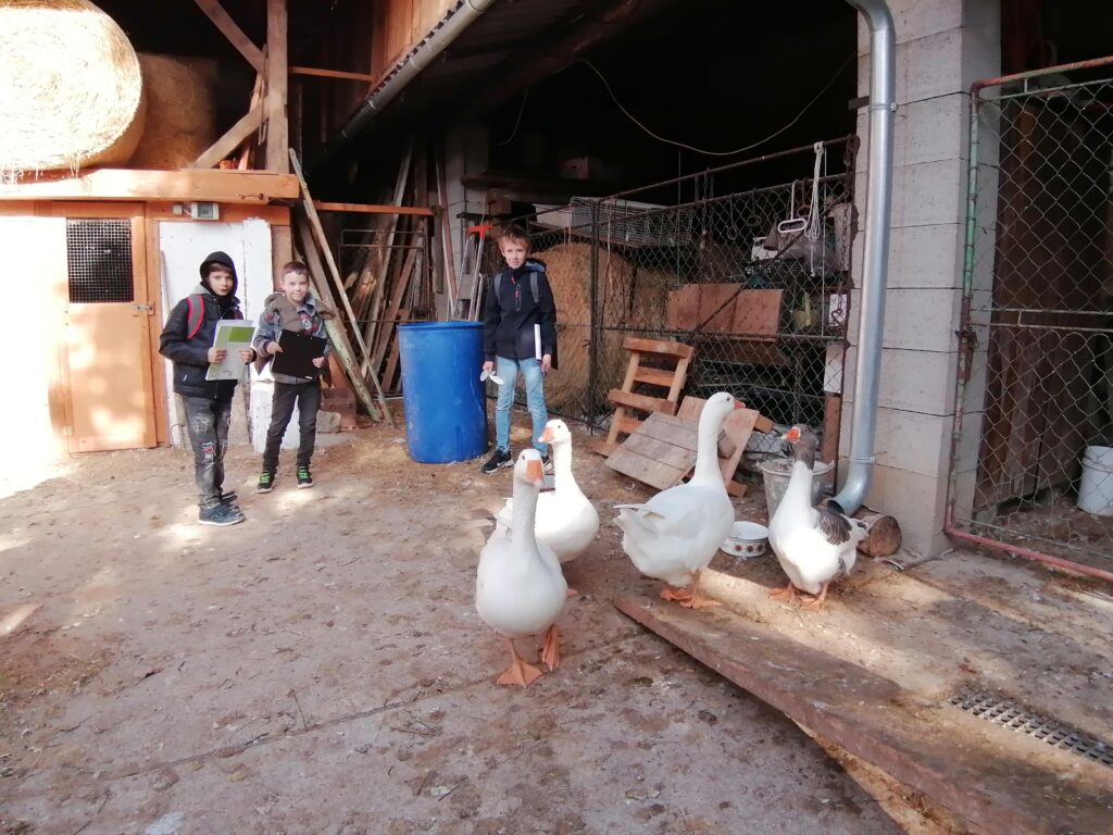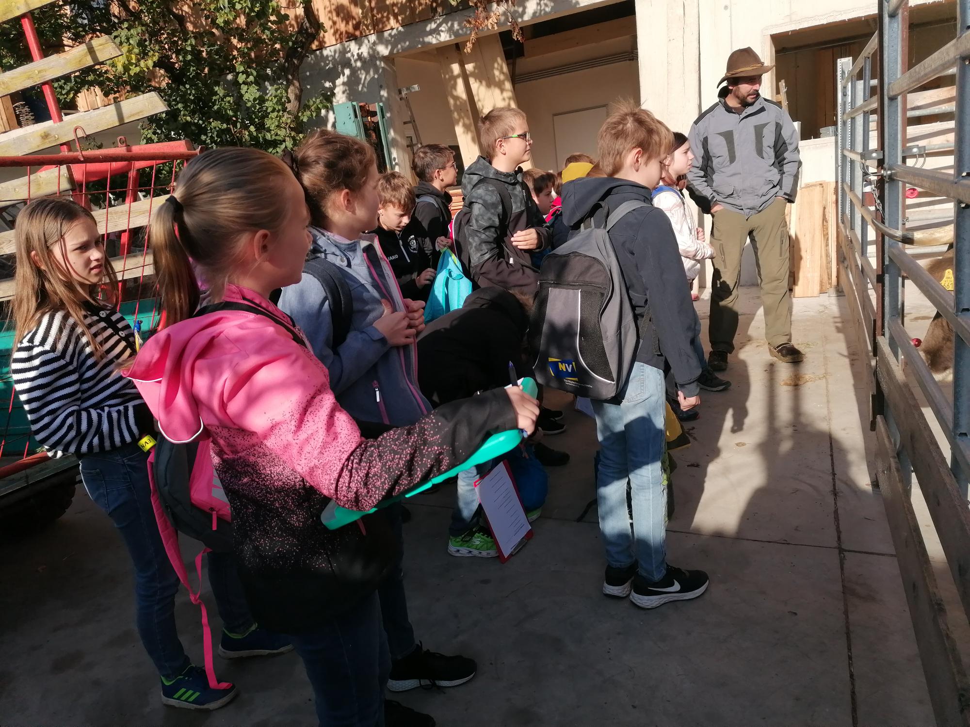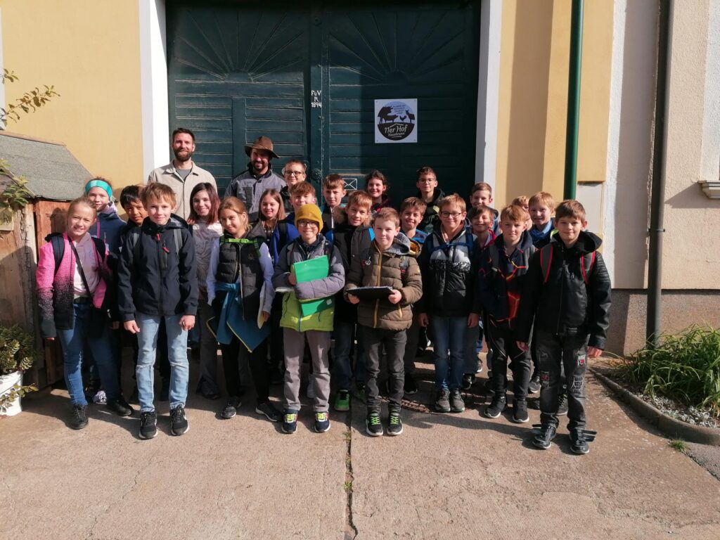 Im Zuge des MINT-Unterrichts besuchten wir aufgrund unseres Milchprojektes den 11er Hof von Markus Ulrich in Hausbrunn.  Herr Ulrich bewirtschaftet einen alternativ und nachhaltig geführten Bauernhof,  mit vielen verschiedenen Tieren. Er erzählte uns viel Interessantes über die Rinderhaltung und über die seltenen Rassen und beantwortete auch unsere gestellten Fragen.   Beim Rundgang sahen wir auch alle anderen Tiere, die hier ein artgerechtes Zuhause haben.  Als Mitbringsel haben alle ein Glas Joghurt von Herrn Ulrich als Geschenk bekommen. Ein herzliches Dankeschön.
