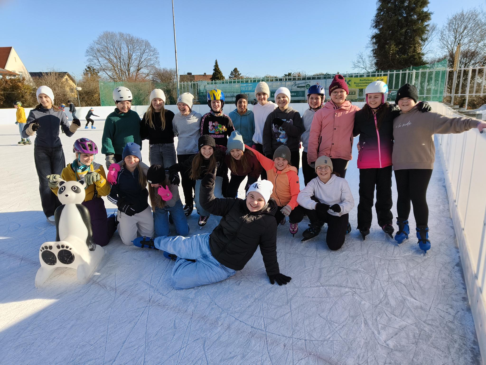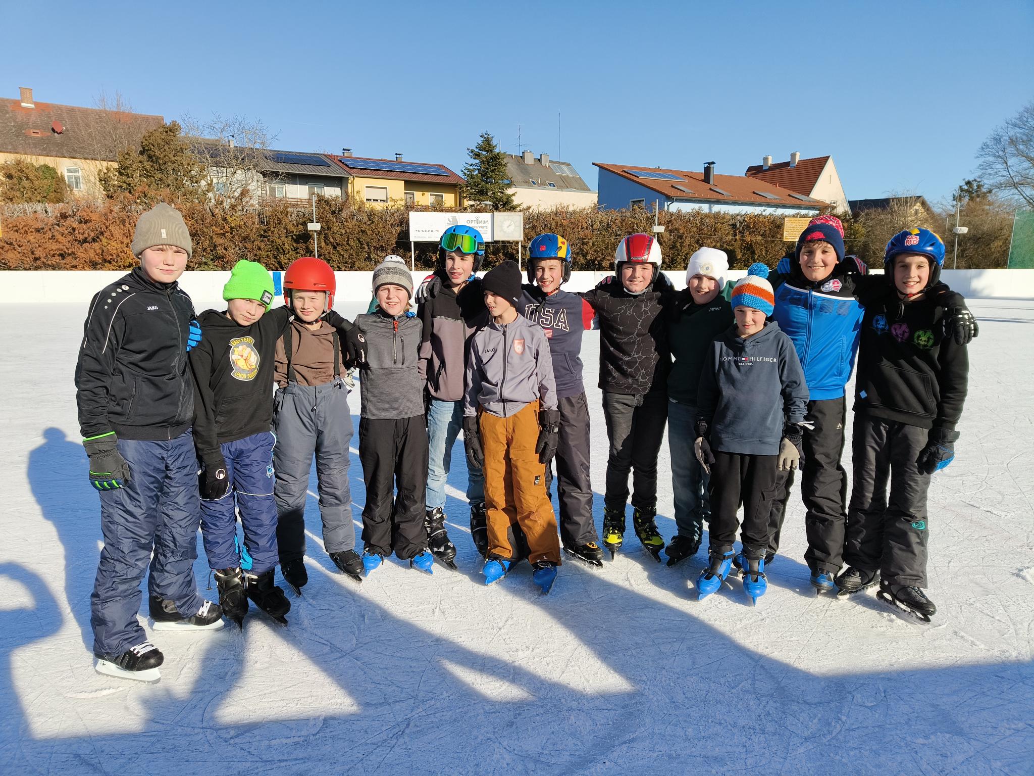Bei herrlichem Sonnenschein verbrachten die 1. Klassen den Nachmittagsunterricht am Eislaufplatz in Matzen. Bei diesem Wetter macht das Eislaufen großen Spaß!
