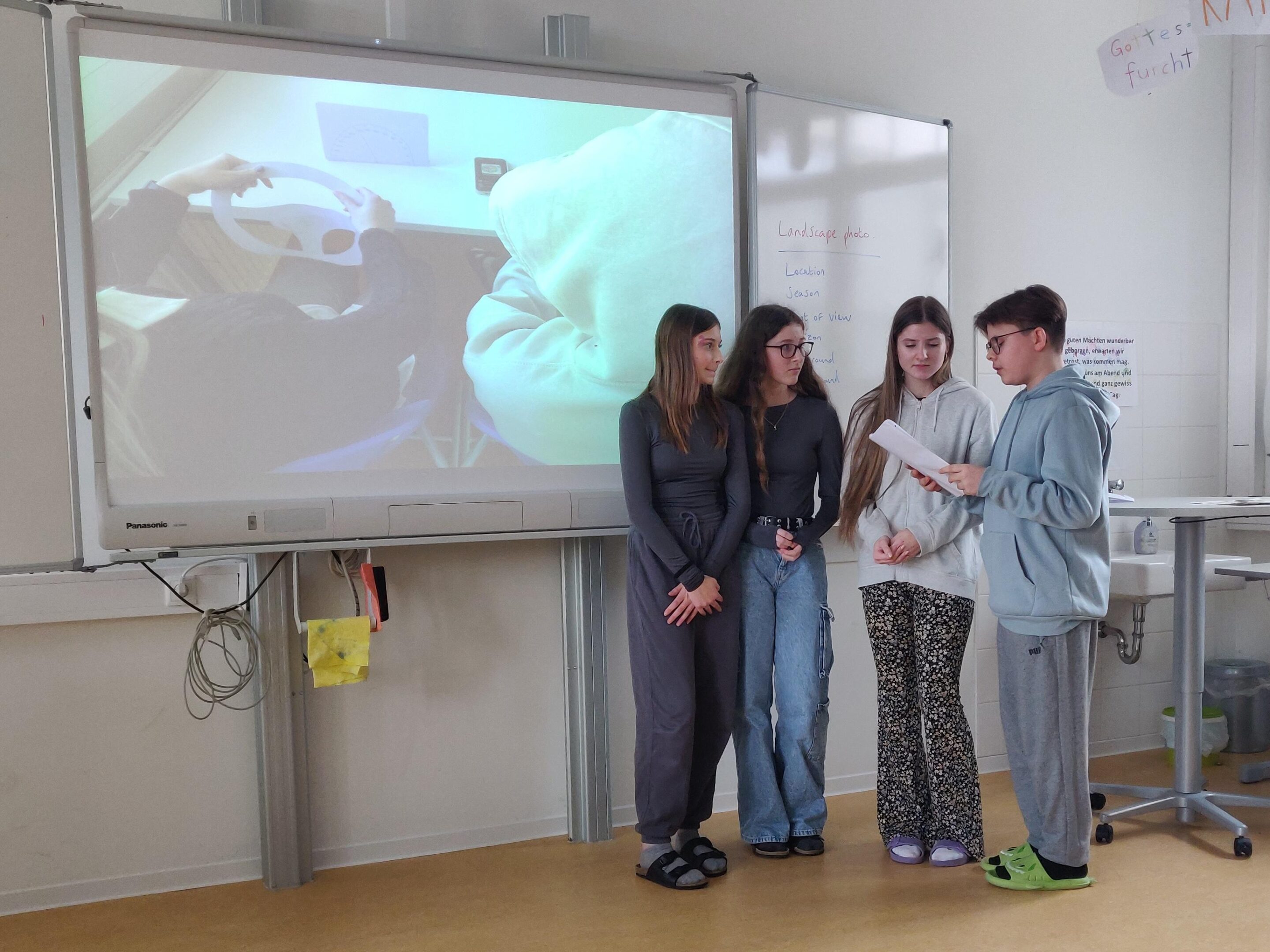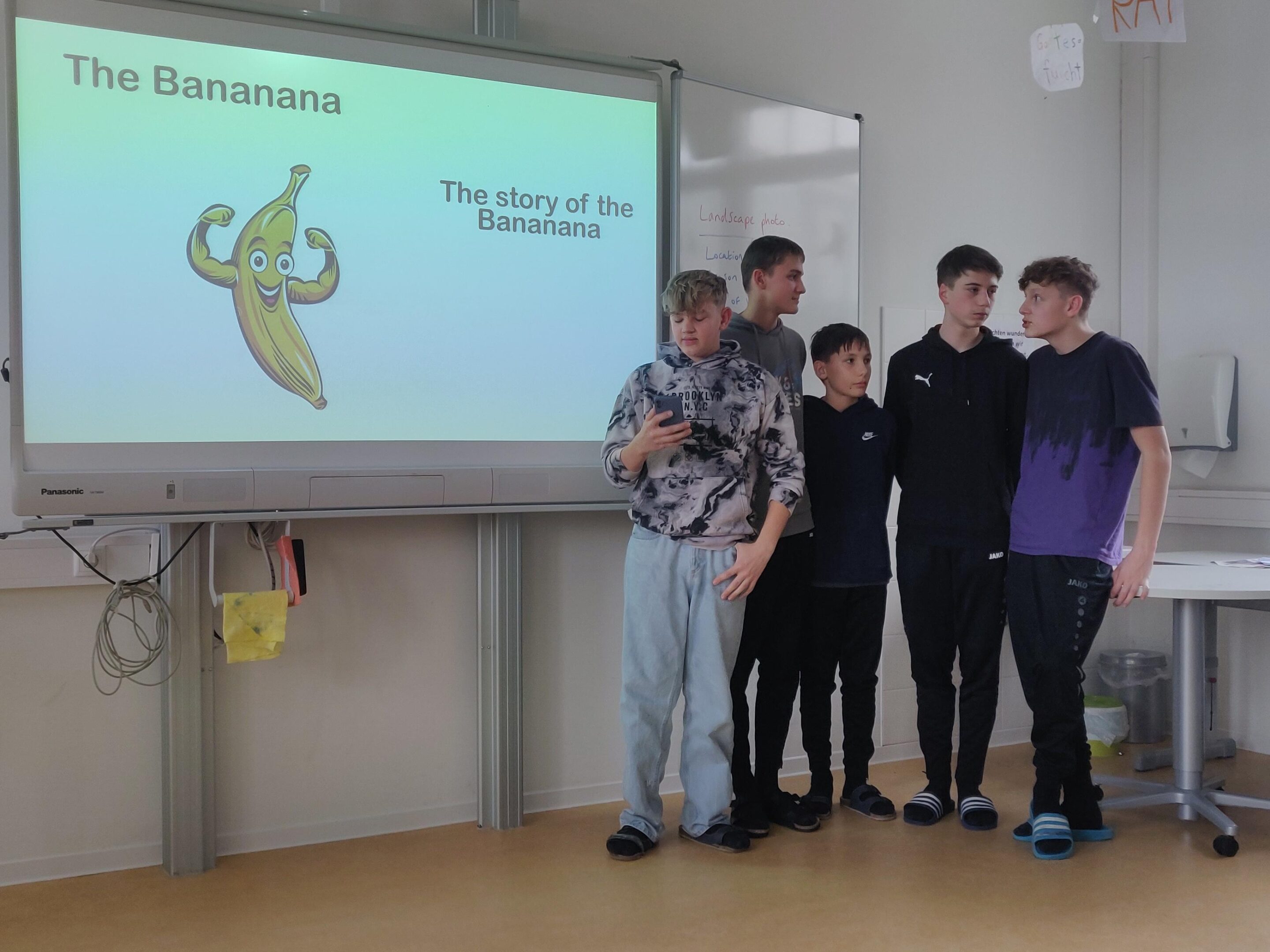 We acted out drama sketches and improved our English skills with Paul. Stuart showed us how to make photo shows and we played the Banana and Werewolf Game together. During that week we had a lot of fun. All students of grade 4 had a great time.