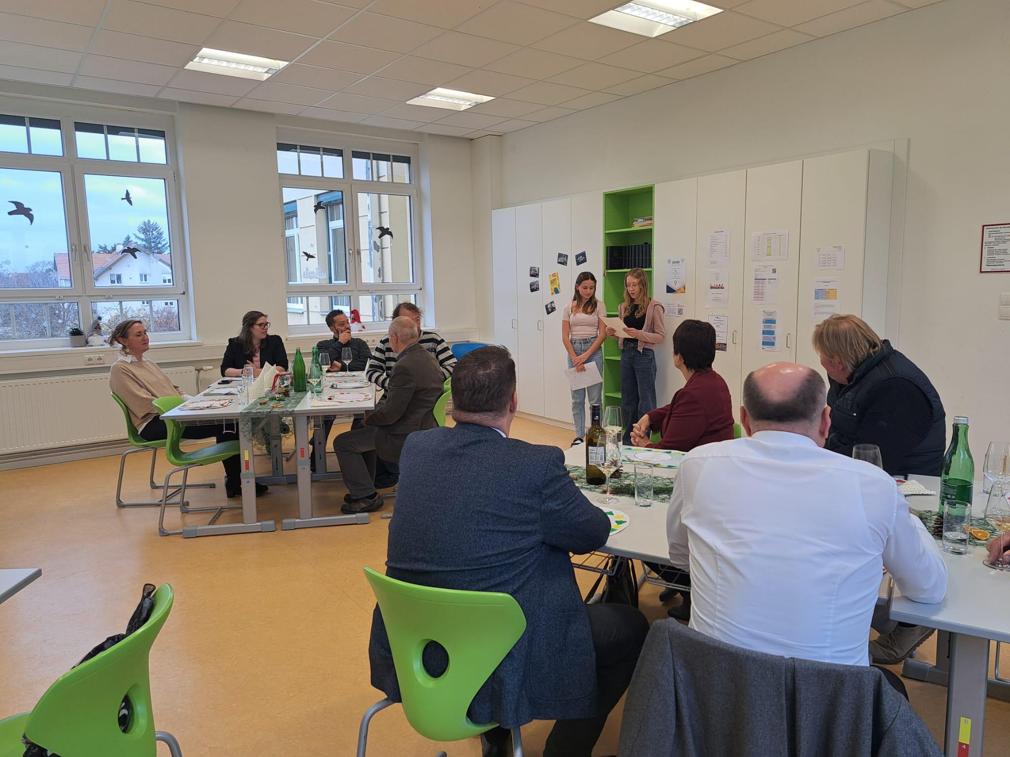 Nach 35 Jahren erhielt die NöMS Poysdorf eine neue und top ausgestattete Schulküche. Zu diesem Anlass zauberten die Schülerinnen und Schüler ein köstliches 4-Gänge-Menü für unsere Ehrengäste. Unter den Ehrengästen waren der Obmann der Mittelschulgemeinde, die Bürgermeister der umliegenden Gemeinden, die Direktorinnen der Sprengelvolksschulen, Dechant Bernd Kolo und die örtlichen Firmen, die das Projekt erfolgreich umgesetzt haben. Zwischen den Gängen wurde ein kreatives Programm von Schülerinnen und Schülern gestaltet. Während der Küchenführung segnete unser Dechant diese.