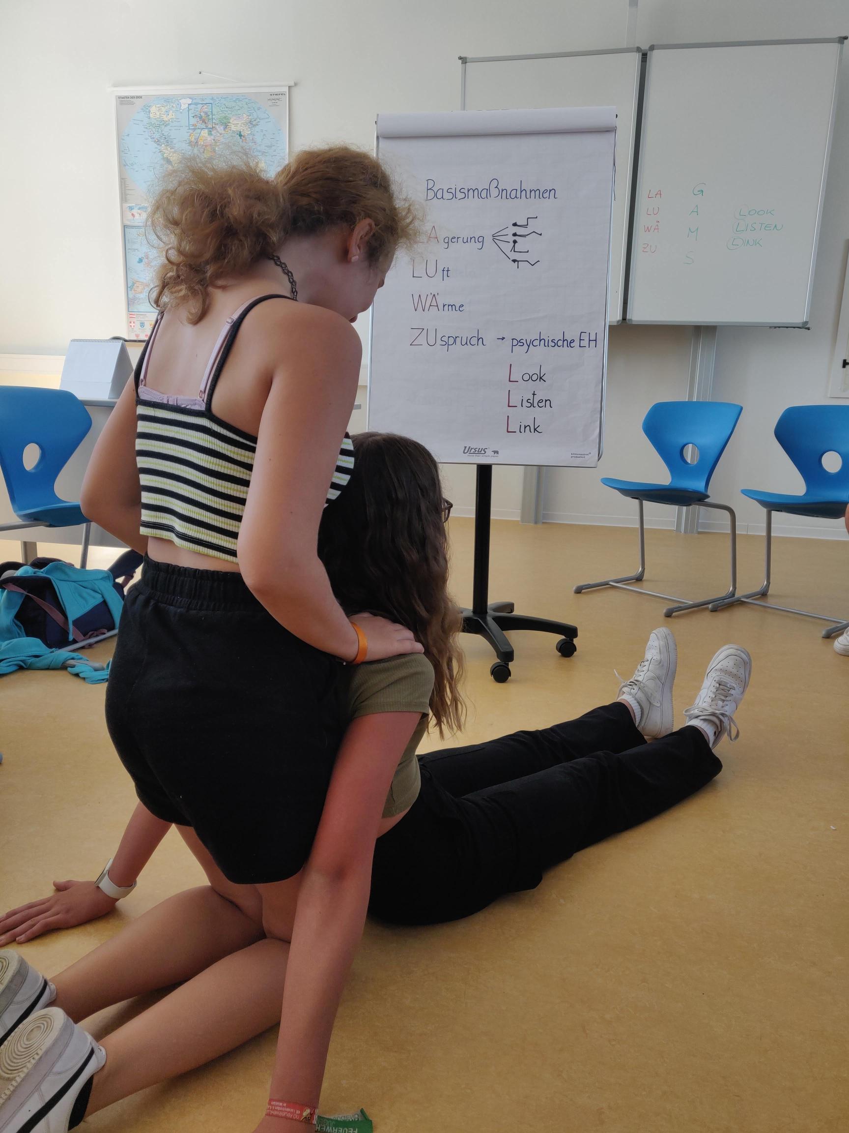 Die beiden 4. Klassen starteten gleich in der 1. Schulwoche mit dem 1. Modul des Erste Hilfe-Kurses, in dem es um Grundlagen der Ersten Hilfe und um das neu dazugekommene Thema „Psychische Erste Hilfe“ ging. Die vier weiteren Module werden im Laufe des Schuljahres abgehalten und enden mit der Teilnahmebestätigung für den Kurs, die auch zur Anmeldung für den Führerschein gültig ist.