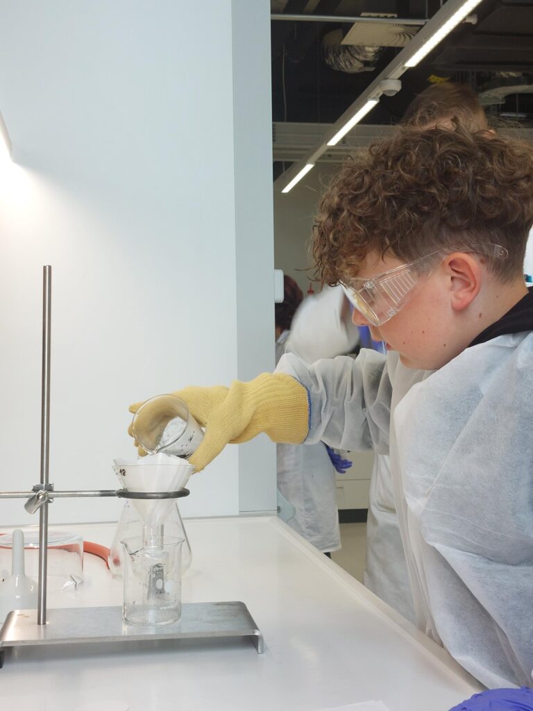 Zum Experimentiertag am Campus in Krems war die 1b Mintklasse eingeladen. Den SchülerInnen wurde ein sehr interessantes und abwechslungsreiches Programm geboten. Neben dem Programmieren und Coding wurden auch Versuche in den neuen Chemiesälen durchgeführt. Das Programmieren einfacher Computerspiele gelang sehr gut und machte großen Spaß. Im Chemiesaal beschäftigten sich die SchülerInnen mit dem Umkristallisieren von Benzoesäure. Dabei wurde in einem chemischen Vorgang die Säure von einer unbekannten Verunreinigung getrennt. In den Pausen wurden wir mit leckeren Lunchpaketen versorgt. Es war ein sehr schöner und spannender Tag am Campus!