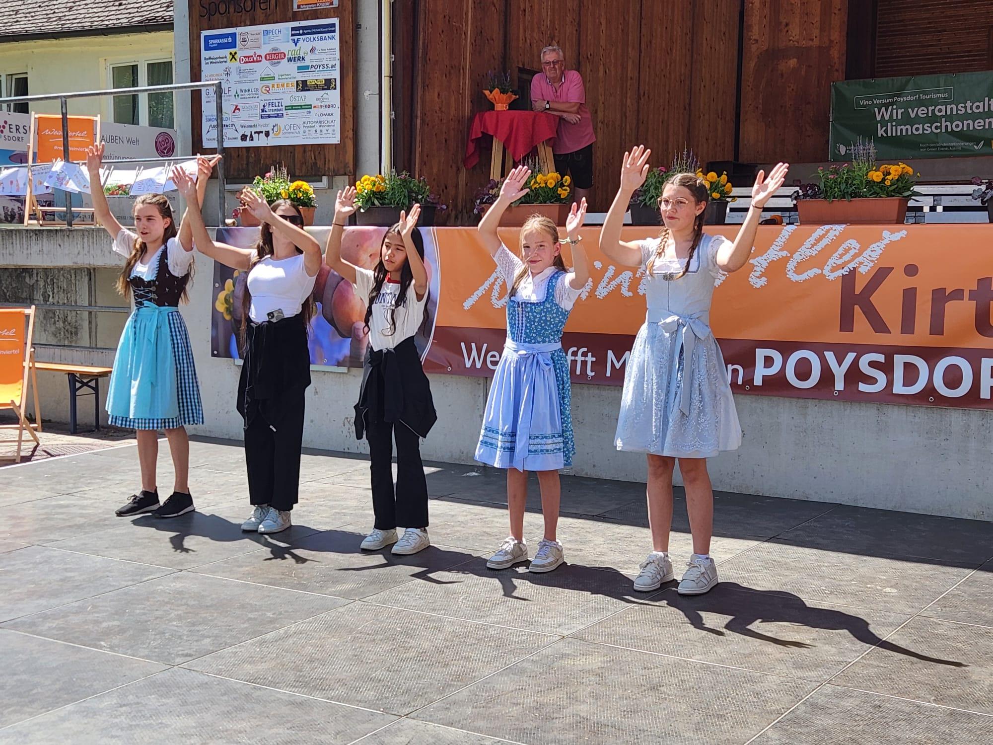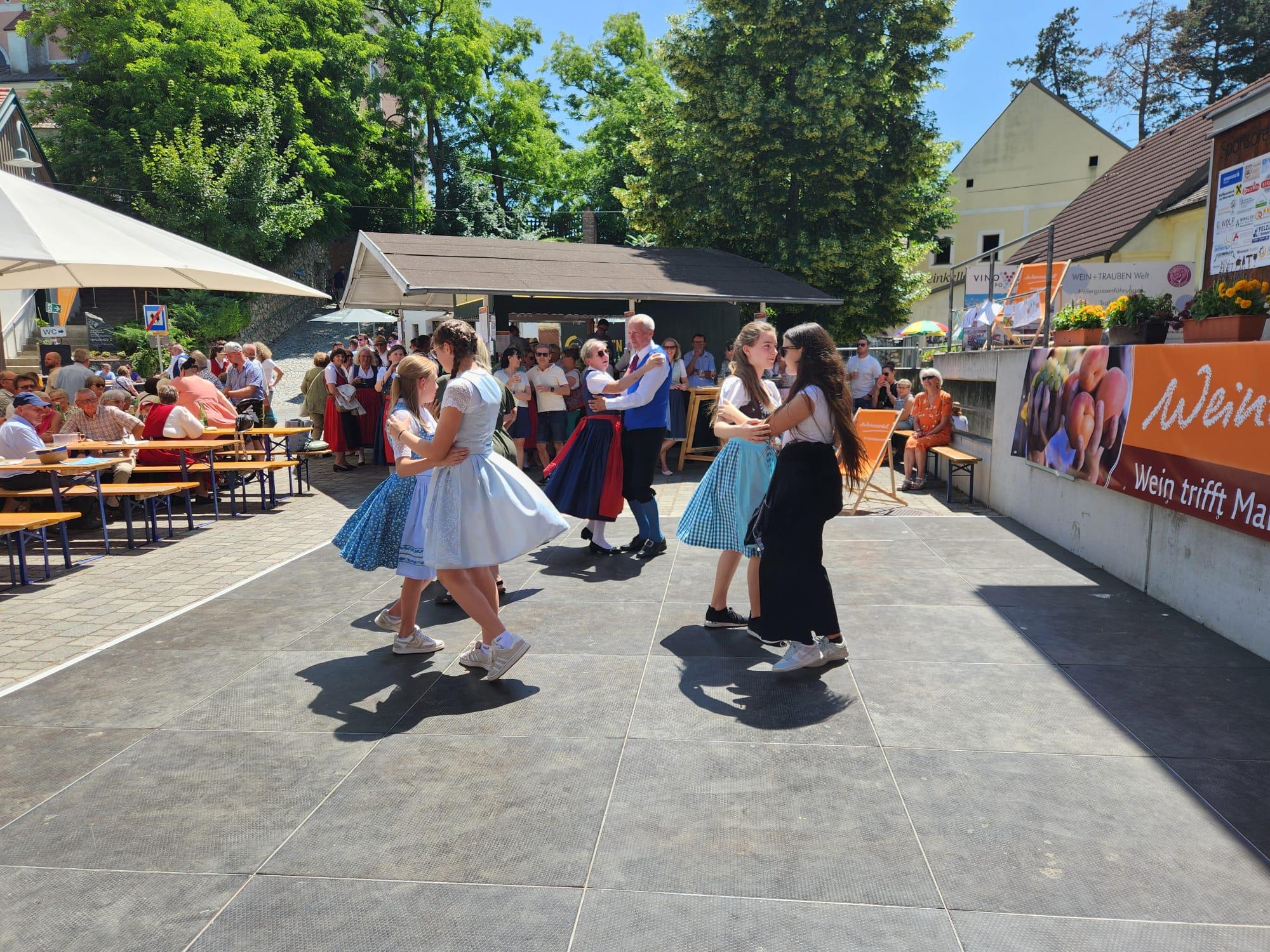 Wie jedes Jahr im Juni wurde der traditionelle Marillenkirtag in der idyllischen Poysdorfer Gstettn gefeiert. Ein besonderes Highlight war der gemeinsame Auftritt einiger Schüler:innen mit der Volkstanzgruppe Kleinhadersdorf, bei dem sie den schwungvollen Tanz „Siebenschritt“ auf der Bühne präsentierten.