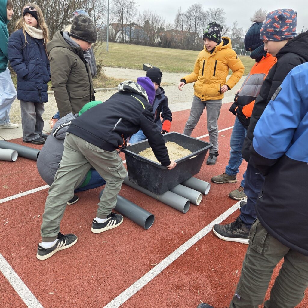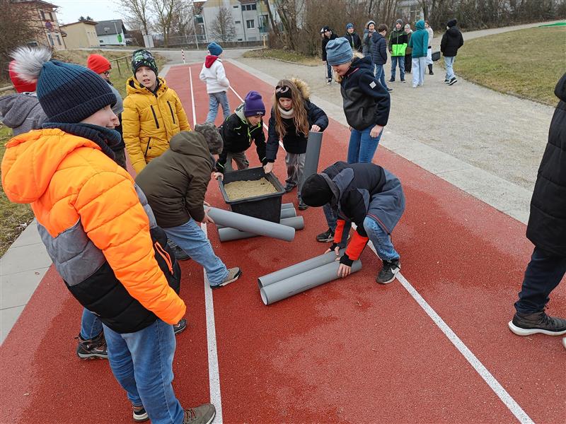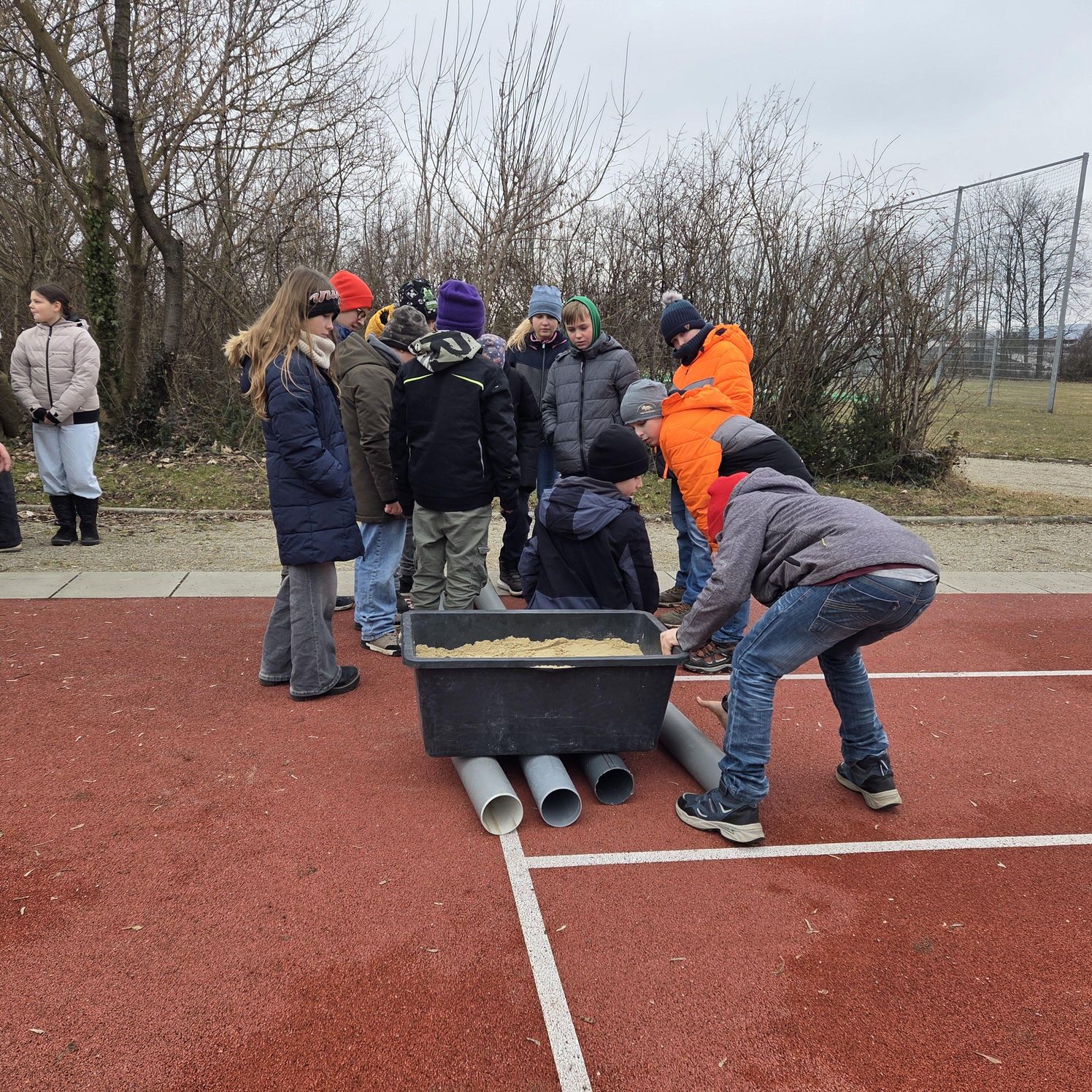 Die Kinder der 1b konnten im Zuge des MINT-Unterrichts am eigenen Leib erfahren, wie die Entwicklung des Rades den Alltag erleichtert hat. Eine der ersten Anwendung des Rades war beim Bau der Pyramiden im alten Ägypten.