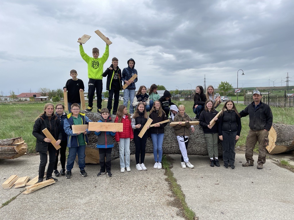 Die MINT-KLasse baut Insektenhotels. Die SchülerInnen arbeiten in Gruppen und haben selbstgestaltete Pläne für Insektenhotels entworfen. Die dafür benötigten Materialien wurden teilweise von zuhause mitgenommen. Die restlichen Holzbretter holten wir uns im Sägewerk Wilfing. Im Rahmen des MINT-Unterrichts besuchten wir das Sägewerk und Herr Wilfing Heinz schnitt uns die Bretter in der benötigten Länge zu. Er erklärte uns noch die einzelnen Maschinen im Sägewerk. Wir möchten uns recht herzlich bei Herrn Wilfing bedanken, da er uns das Holz kostenlos zur Verfügung stellte. Für ein Insektenhotel wird Plexiglas benötigt, auch hier wollen wir uns bei der Firma Spiehs