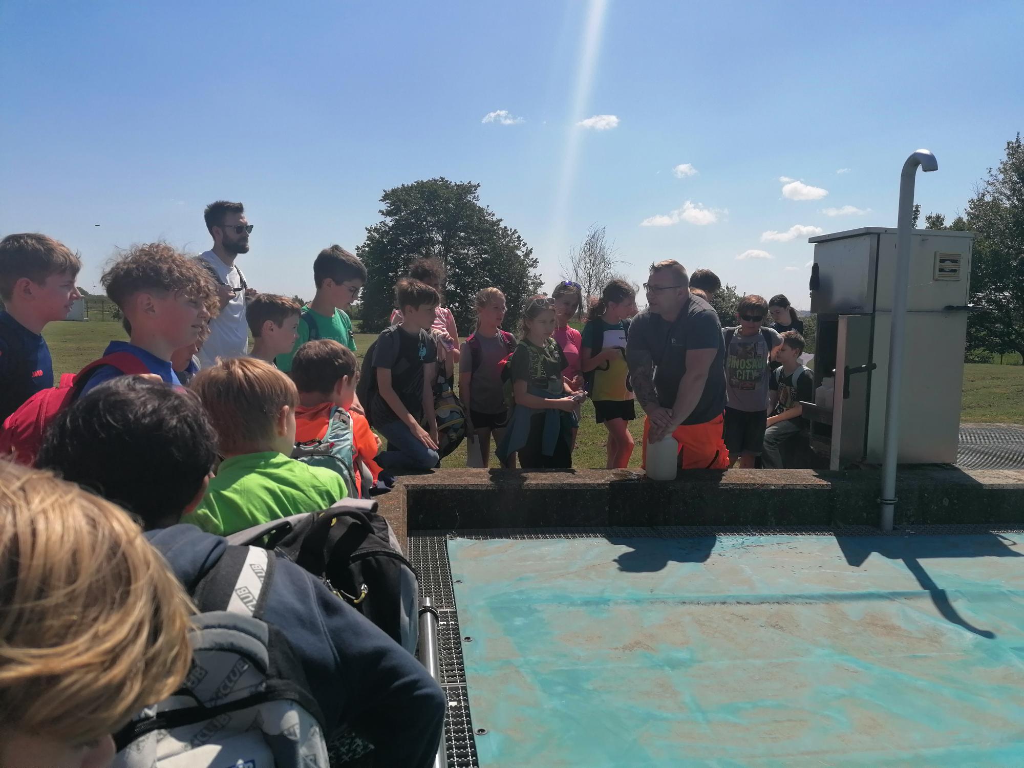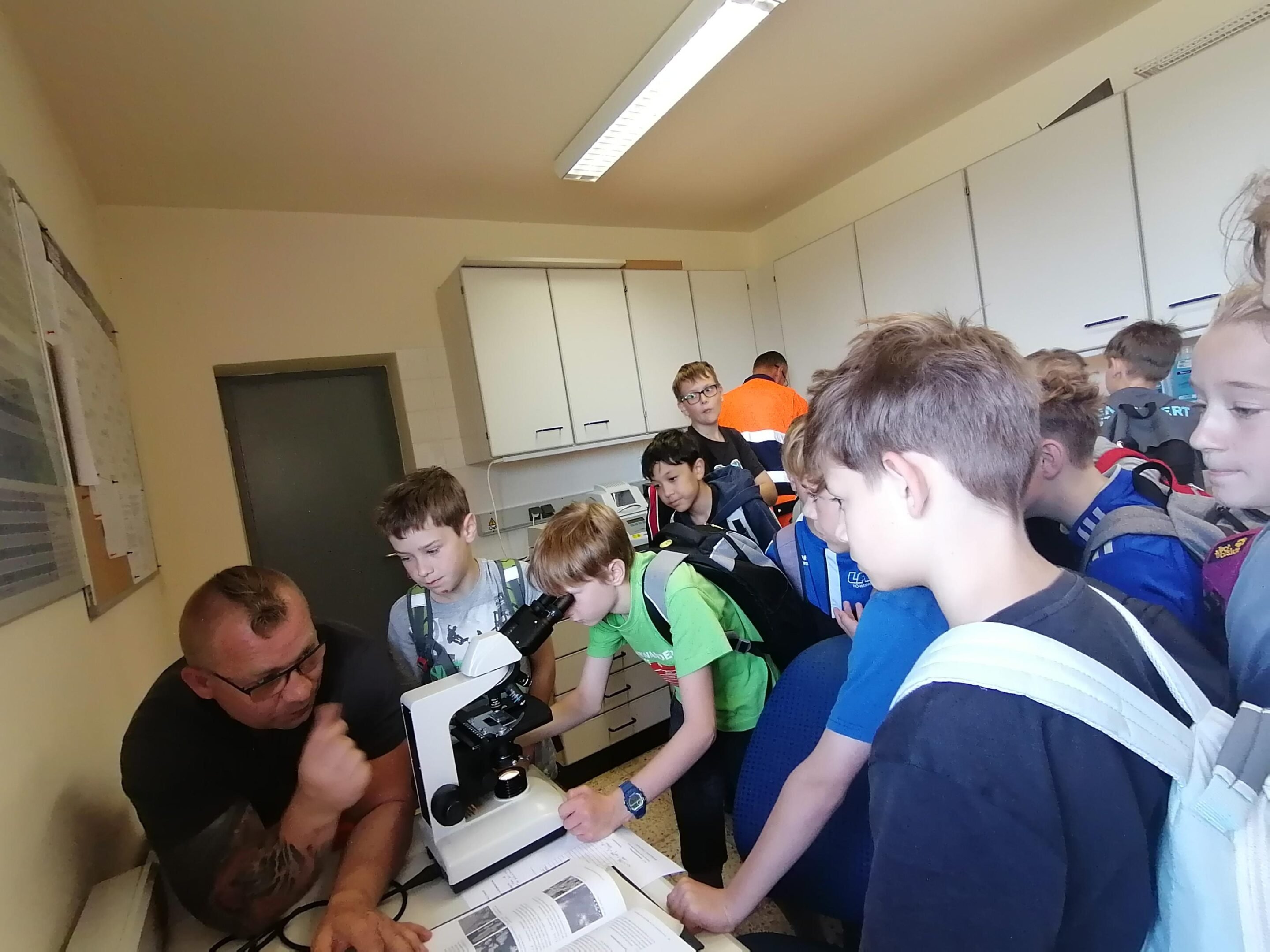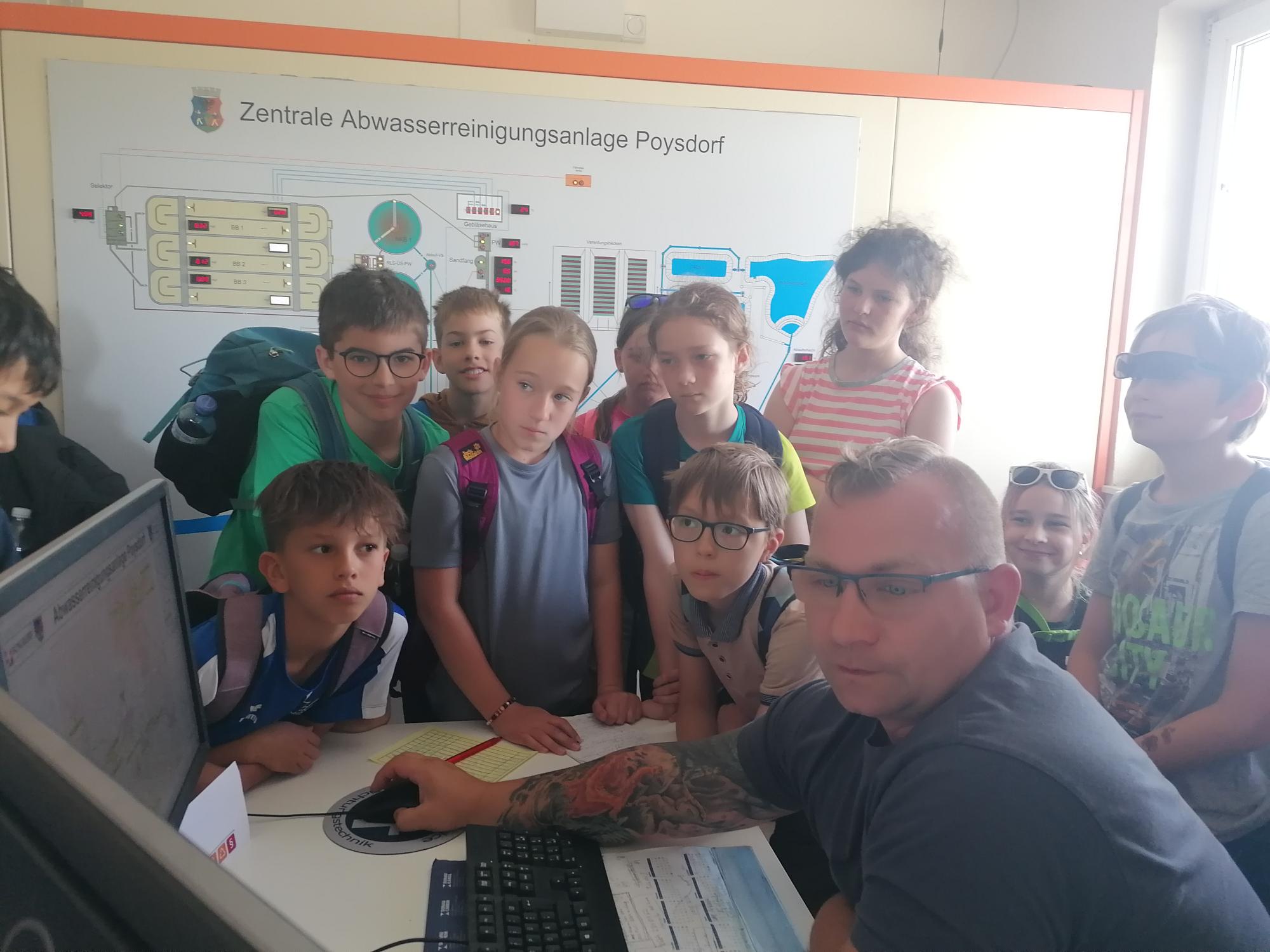 Am 15. Mai 2024 fuhren die Schüler der MINT-Klasse mit dem Fahrrad zur Kläranlage bei Walterskirchen. Dort begrüßten uns die Kläranlagenwärter sehr freundlich. Sie waren sehr nett und erklärten uns die verschiedenen Becken in der Kläranlange. Im Labor führten wir ein Experiment durch. Wir schauten ins Mikroskop und beobachteten Räuber, das sind kleine Bakterien, die bei der Reinigung des Wassers helfen. Außerdem zeigten uns die Kläranlagenwärter den Technikraum mit den Computern. Dort sahen wir wie man mit dem Computer die verschiedenen Becken steuert. Danach fuhren wir wieder nach Poysdorf zur Schule zurück. Es war ein sehr schöner Ausflug, besonders das Radfahren hat uns Spaß gemacht.