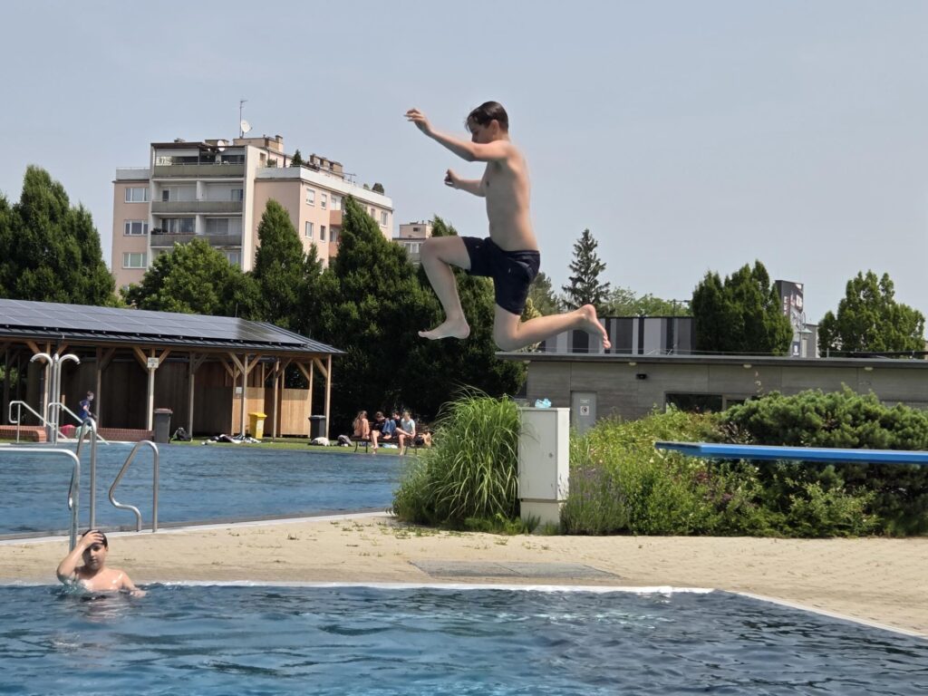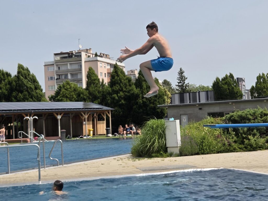 Jedes Jahr im Juni fahren alle Klassen ins Freibad Mistelbach, um die unterschiedlichen Sport- und Schwimmabzeichen zu absolvieren.