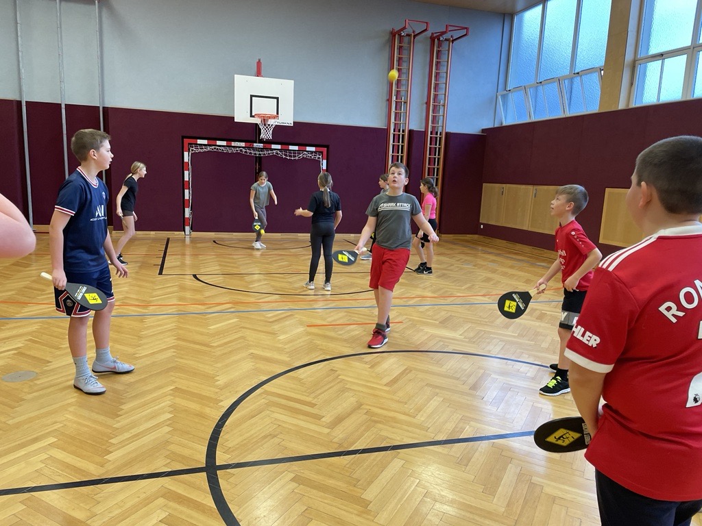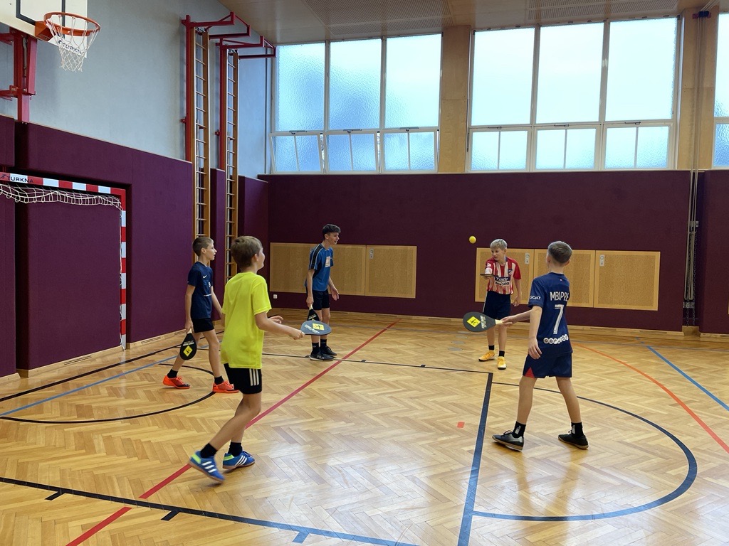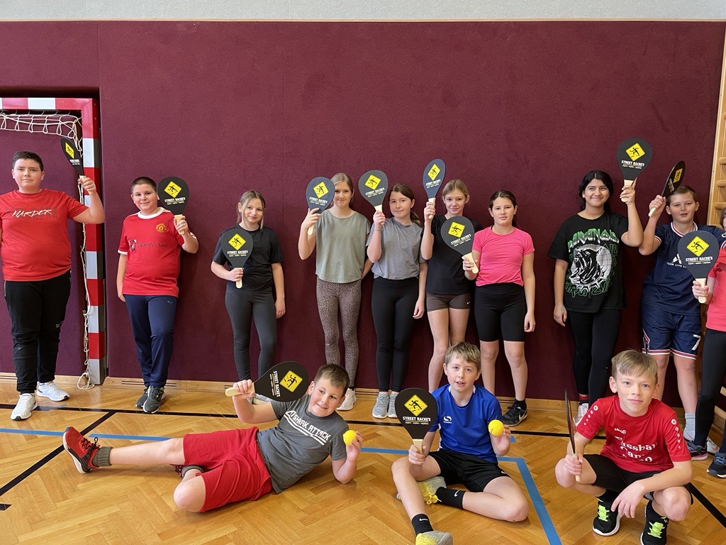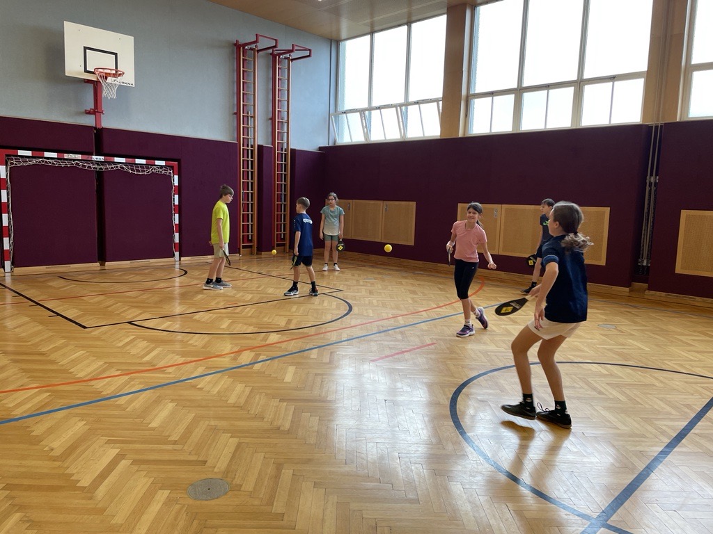 Unsere Schule spielt Street Racket. Street Racket wurde von einem Schweizer, Marcel Straub entwickelt. Ziel ist es, das Spiel für jedermann, jederzeit und überall einzusetzen. Man benötigt einen Schläger, Ball und Feld (diese kann sehr leicht markiert werden) Verschiedene Spielformen ermöglichen abwechslungsreichen Unterricht, wie z.B. in Bewegten Lernen oder auch als Wettkampfform (Turnier, Ringerl….) ein paar Klassen der NÖMS Poysdorf haben dieses Spiel bereits ausprobiert und Gefallen daran gefunden. Sobald wir die Außensportanlage nutzen können, werden wir das Spiel auch außerhalb des Turnsaales spielen.
