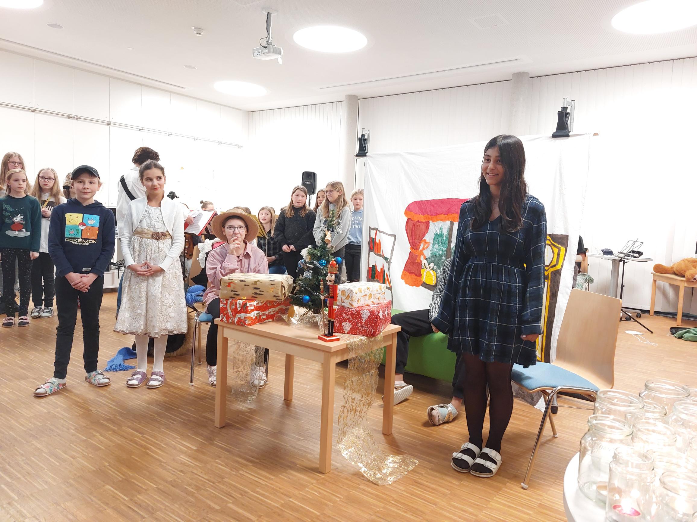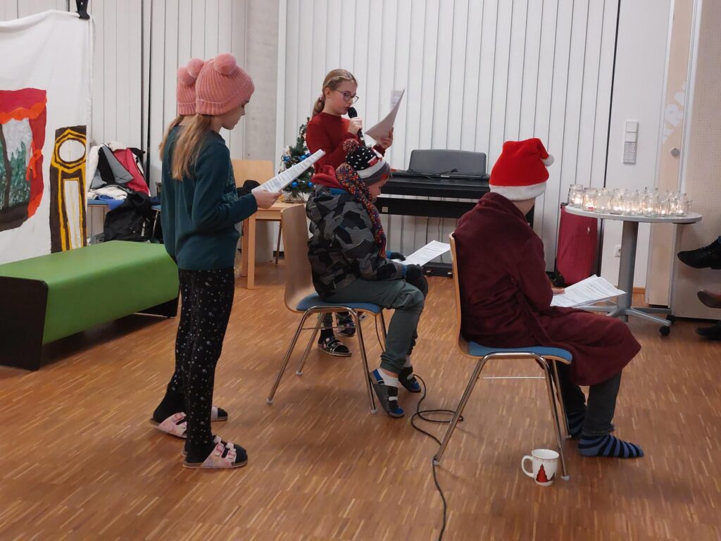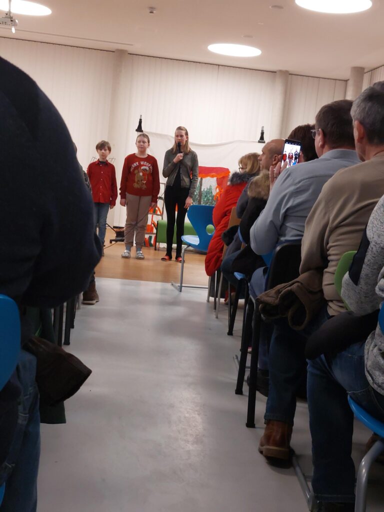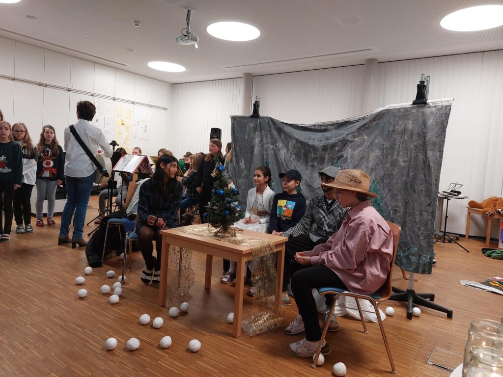 Am 21.12.2022 fand an unserer Schule die Weihnachtsfeier der 1. Klassen statt. Die SUS luden ihre Eltern zu dieser Veranstaltung ein. Sie unterhielten ihre Gäste mit Texten, Gedichten, Musikstücken und einem Theaterstück rund um das Thema Weihnachten.