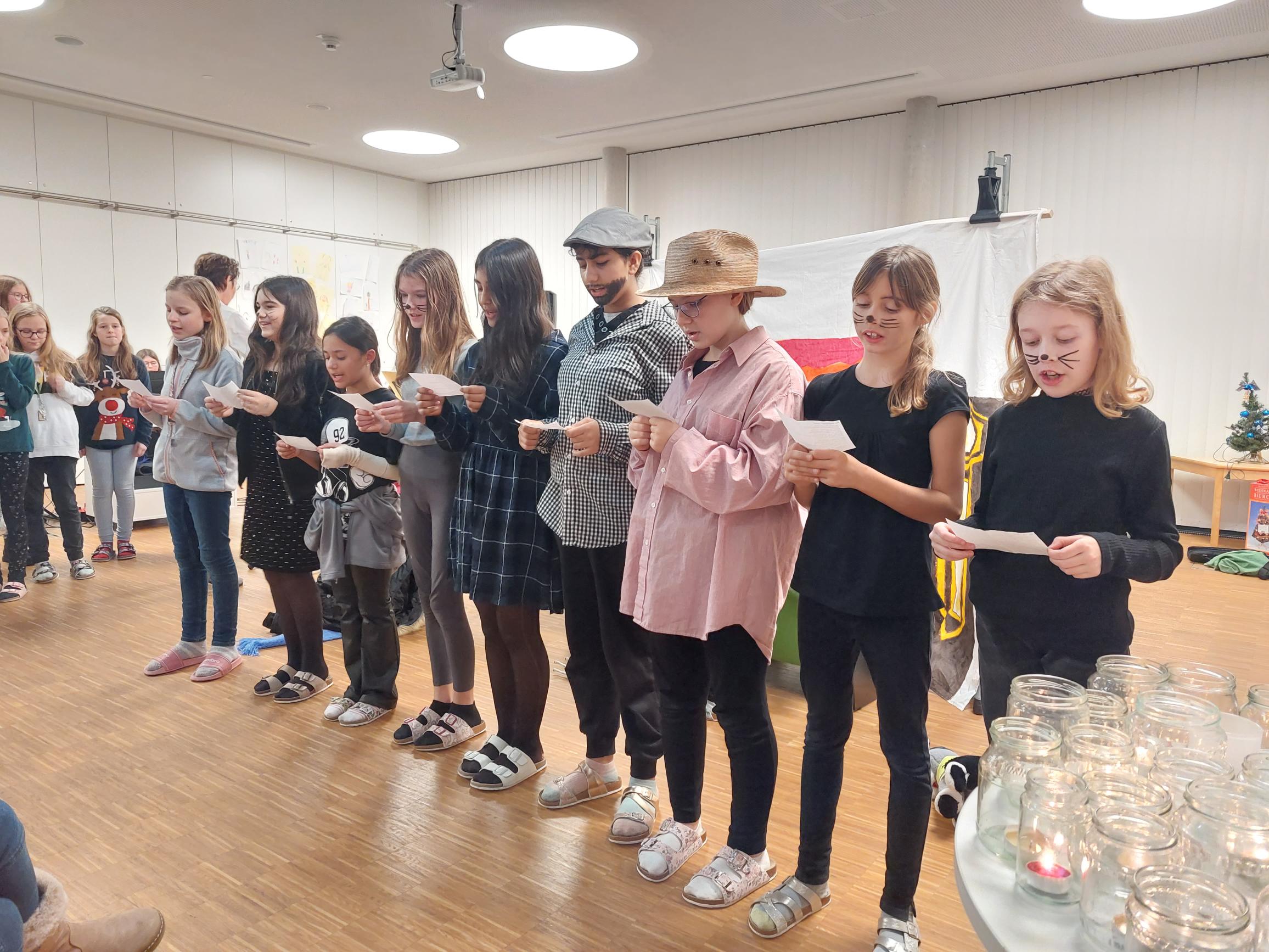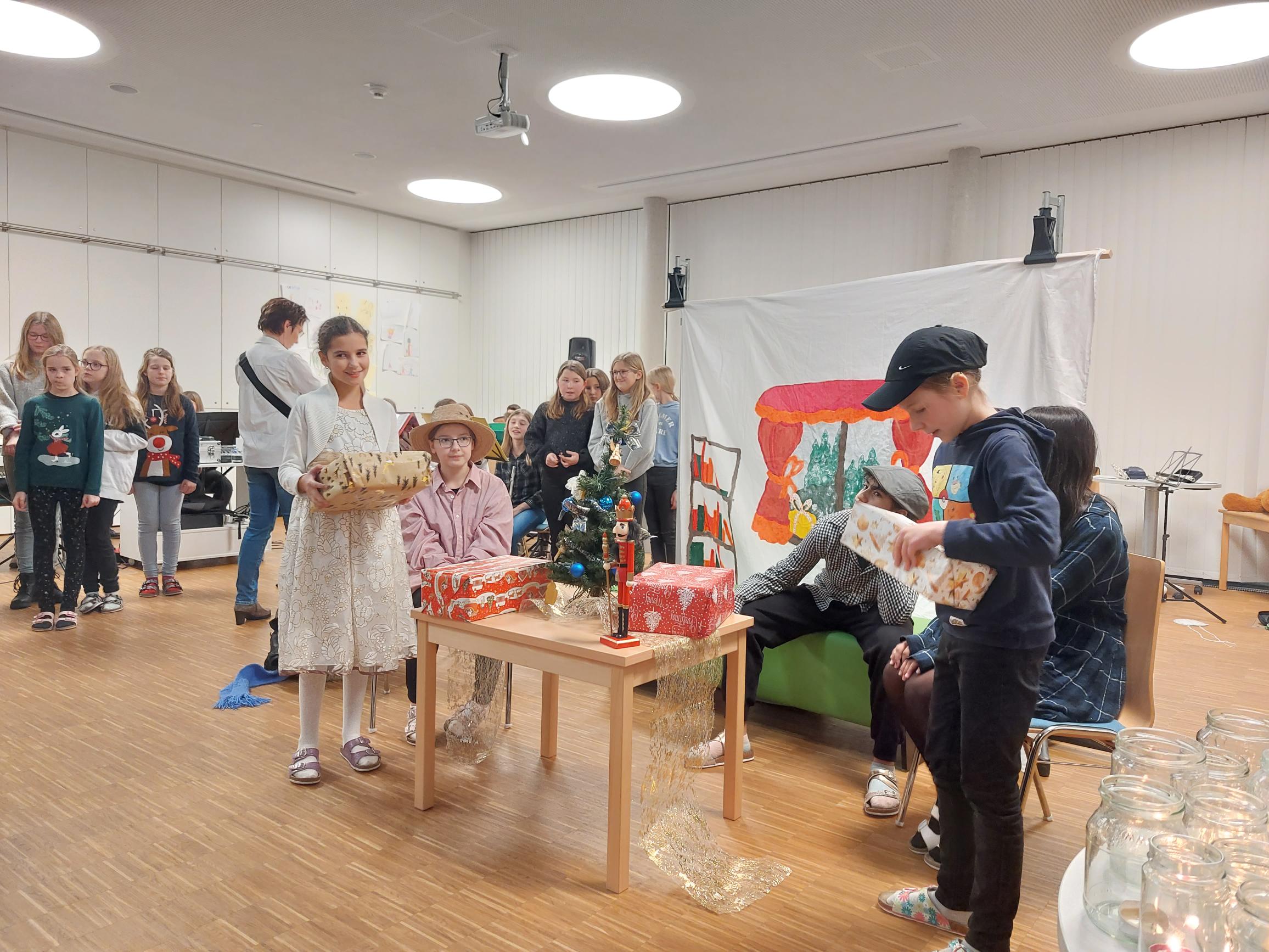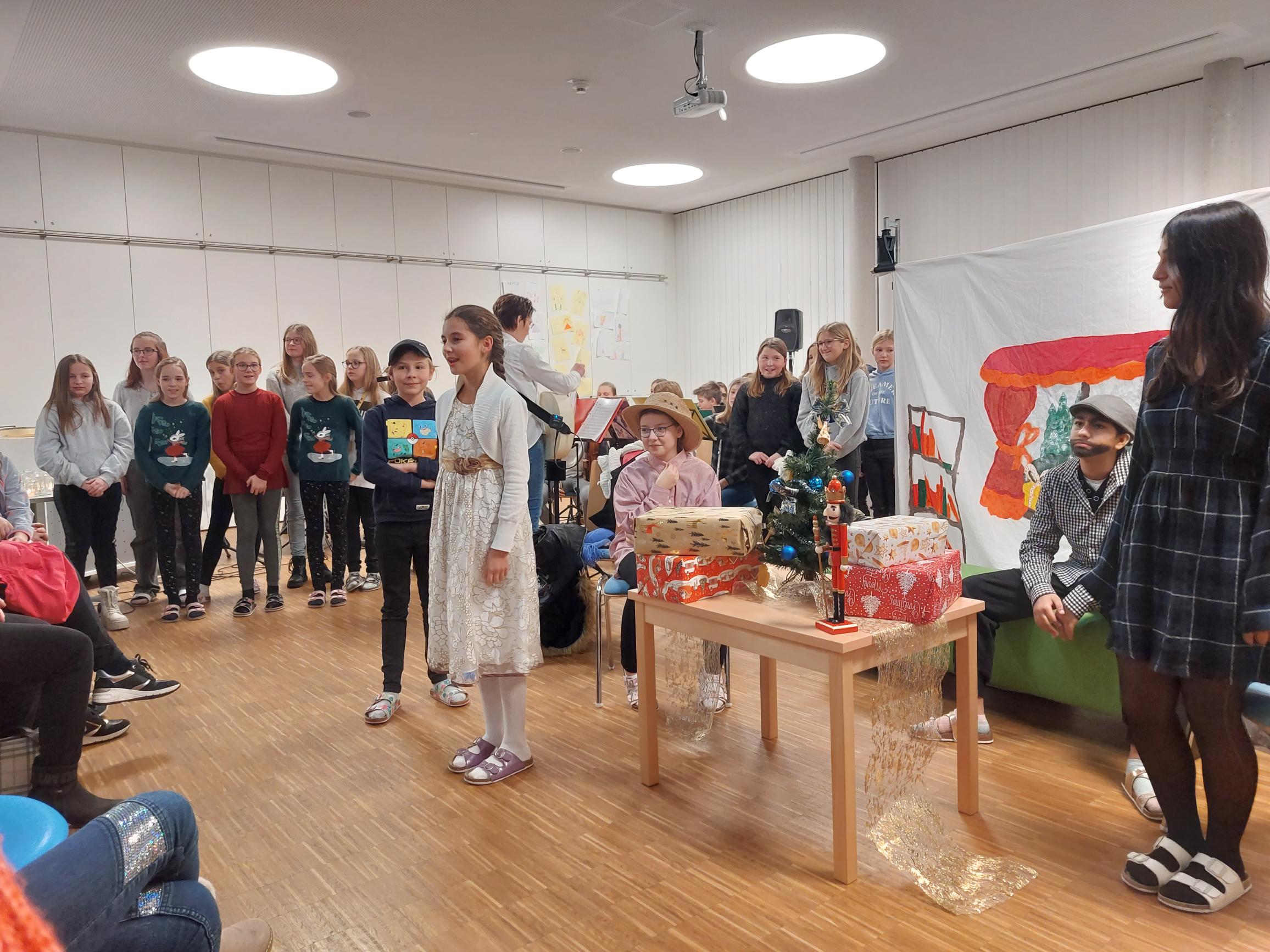 Am 21.12.2022 fand an unserer Schule die Weihnachtsfeier der 1. Klassen statt. Die SUS luden ihre Eltern zu dieser Veranstaltung ein. Sie unterhielten ihre Gäste mit Texten, Gedichten, Musikstücken und einem Theaterstück rund um das Thema Weihnachten.