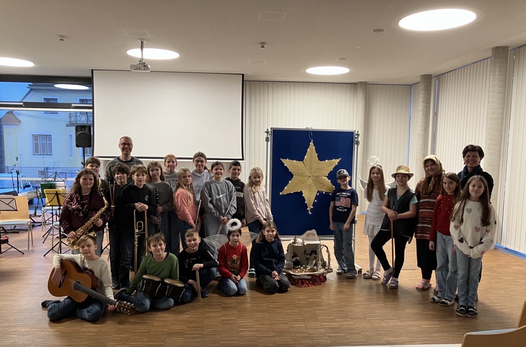 In dem weihnachtlichen Theaterstück „Der Freundschaftsstern“ zeigten die Schülerinnen und Schüler der Präsentationsgruppe und der Schulband, wie man mit Toleranz, Verständnis und Freundschaft andere durch Zuhören, Helfen und Teilen glücklicher und zufriedener machen kann. Die weihnachtliche Botschaft, für andere da zu sein, wurde für alle spürbar.