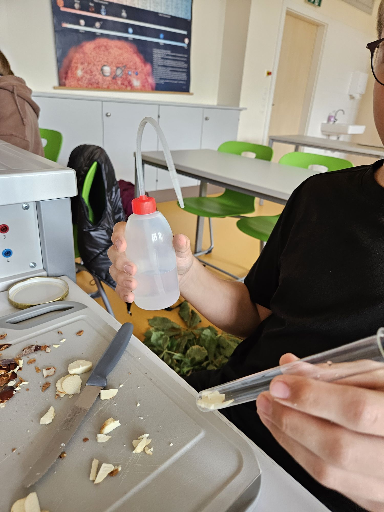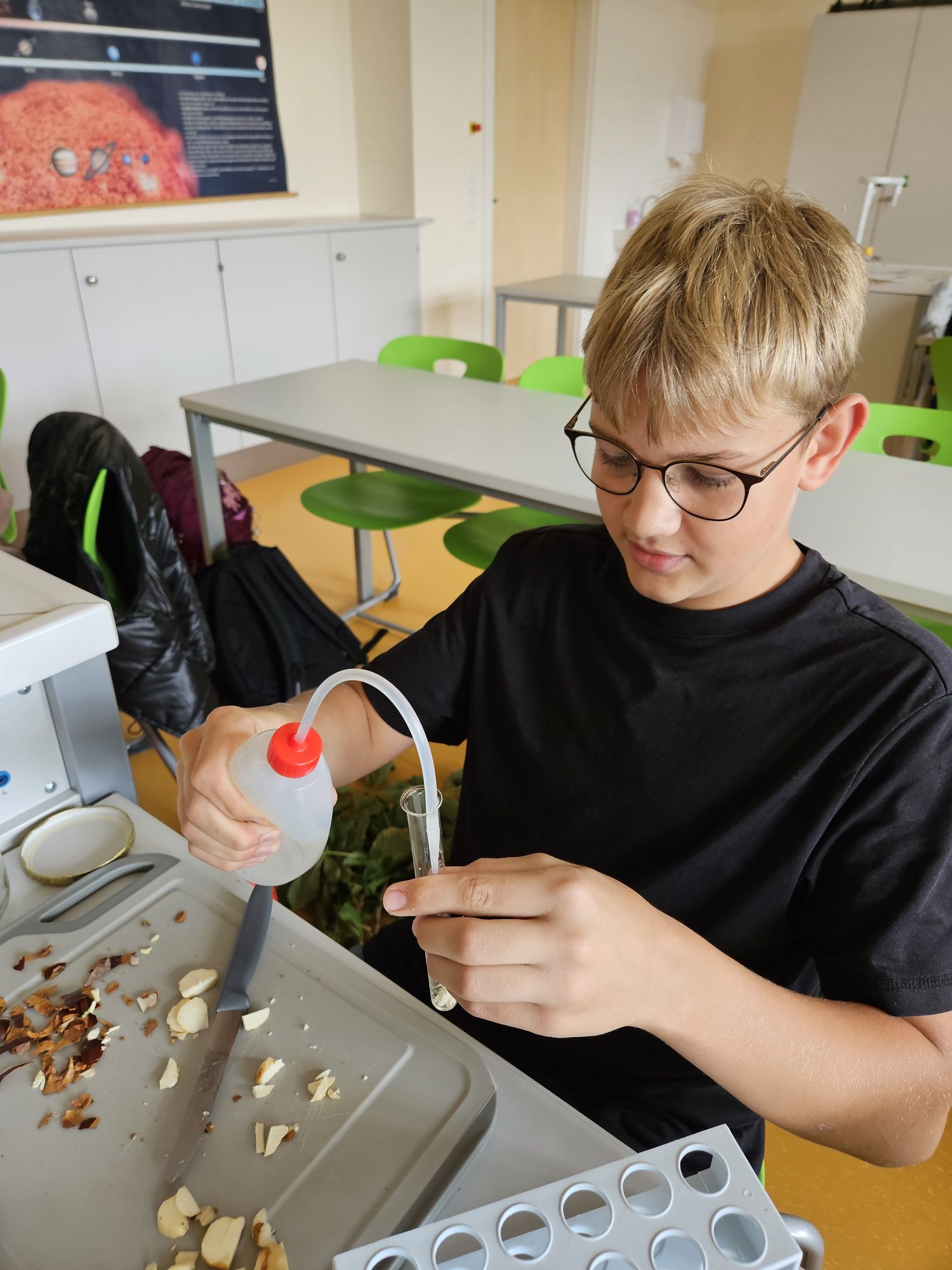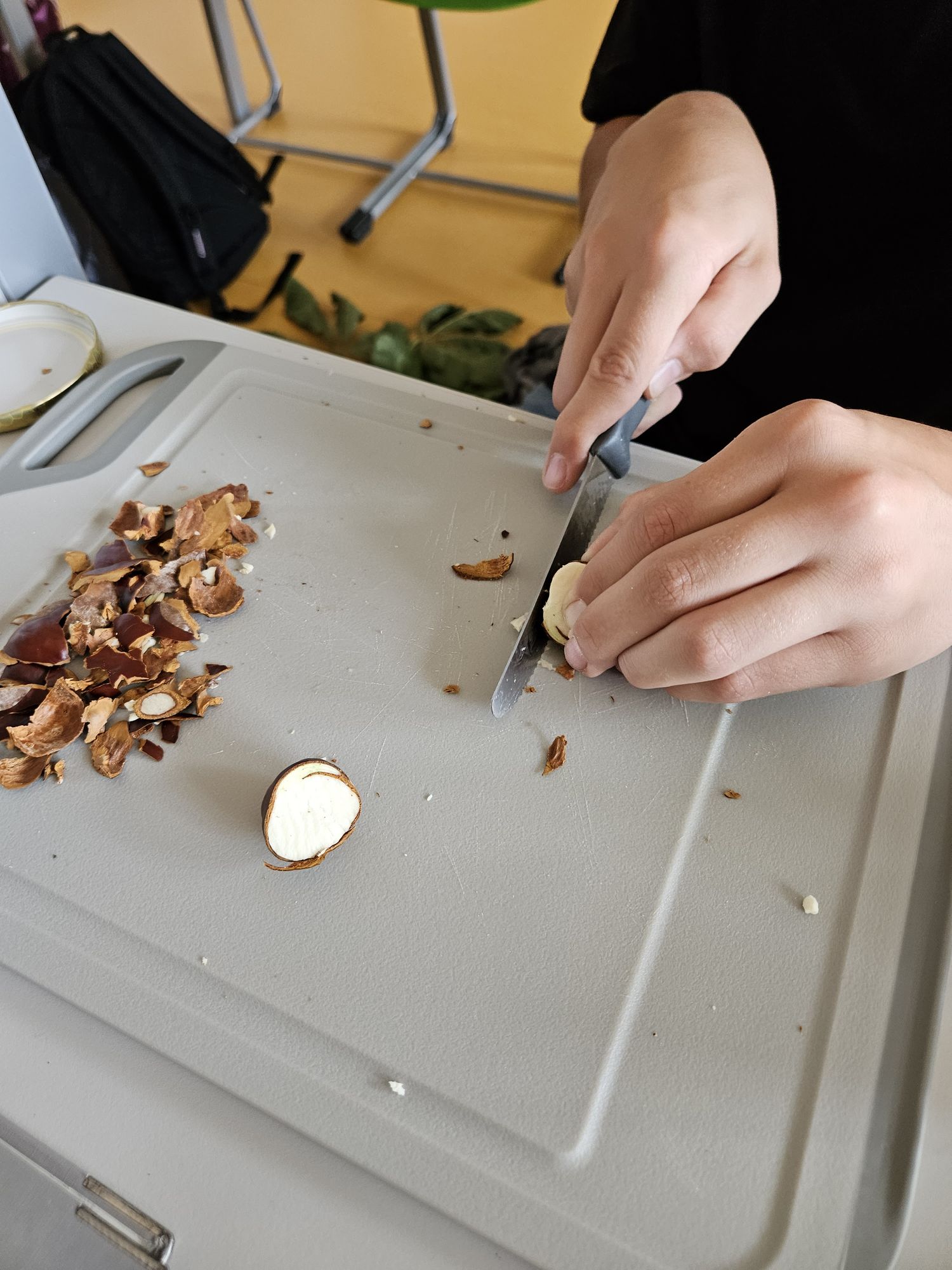 Die Schülerinnen und Schüler des Freigegenstandes NAWI 4 sammelten auch Kastanien und erforschten in praktischer Arbeit die chemischen Geheimnisse der Rosskastanie.