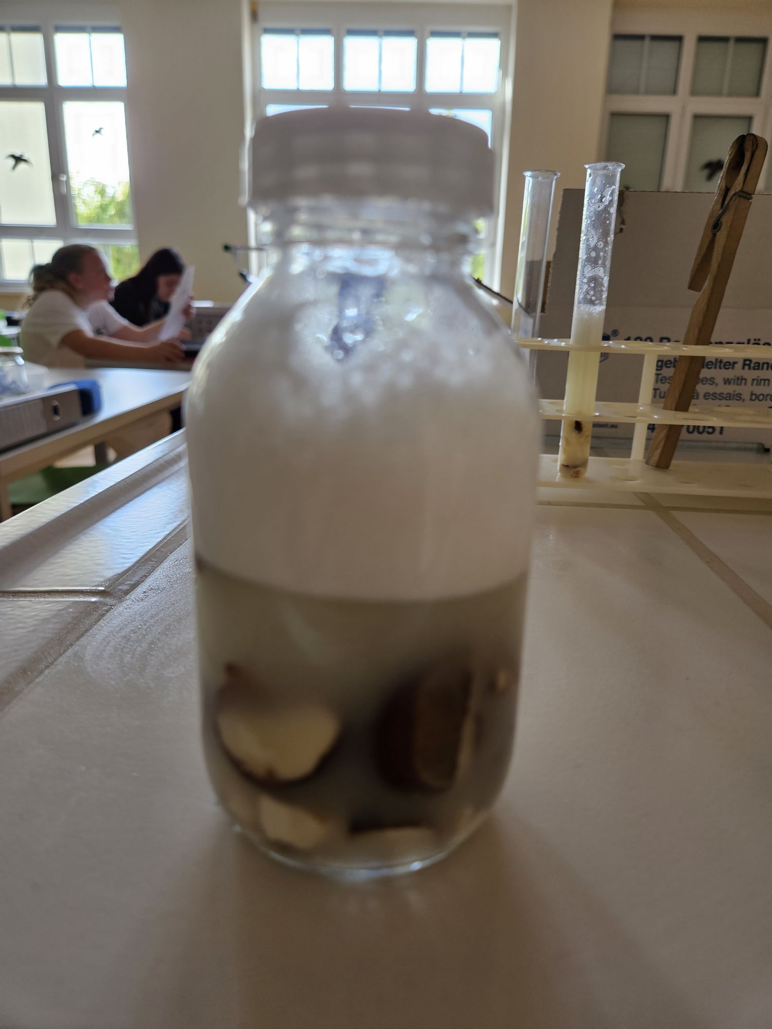 Im praktischen Teil wurden die in der Rosskastanie enthaltenen Saponine für die Herstellung einer Flüssigseife verwendet. Saponine sind sekundäre Pflanzenstoffe, die in Wasser seifenartige Lösungen bilden. Saponine werden als Lebensmittelzusatzstoff E999 in Zahnpasta, Getränken und Shampoos als Schaumbildner verwendet.